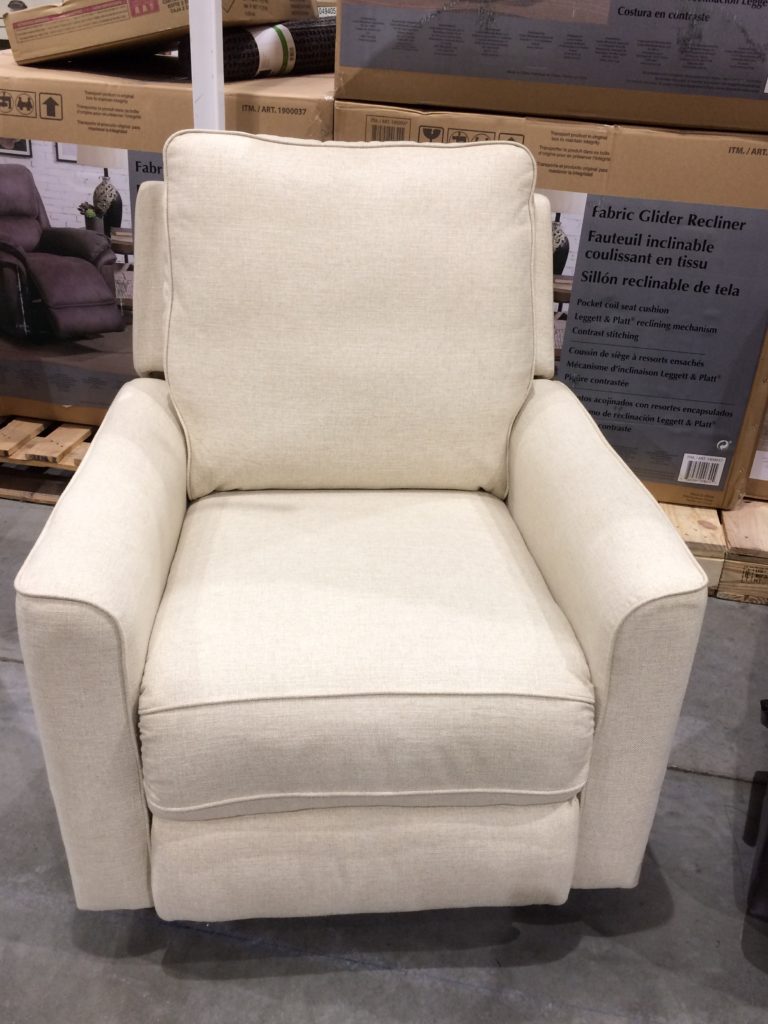 Costco.ca products can be returned to any of our more than 800 Costco warehouses worldwide. Oliver Fabric Glider Rocker Recliner Fully upholstered with premium 100% polyester fabric Plush waterfall tufted backrest Manual reclining mechanism Premium gliding mechanism.